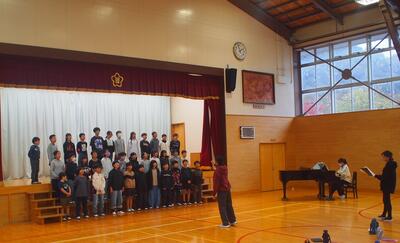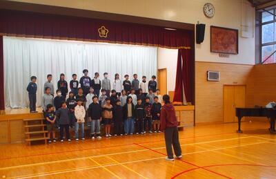 体育館いっぱいに響く歌声に、子どもたちの真剣さと音楽を楽しむ気持ちが感じられました。
