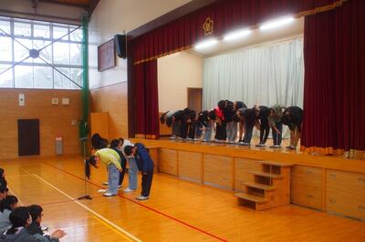 6年生が総合的な学習の時間に、地域に伝わる「蛇切岩伝説」を題材にした劇を発表しました。 この発表は、代々6年生が受け継ぎ、全校児童や地域の方々に向けて披露してきた大切な学びの一つです。 迫力ある演技や工夫を凝らした表現から、伝説への理解と、地域を大切に思う気持ちが感じられました。 最高学年としての成長と、学びの集大成が光る発表となりました。