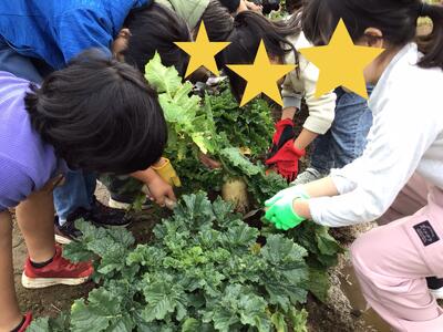 こぶし学級さんと一緒に育ててきた佐波賀大根を収穫しました。