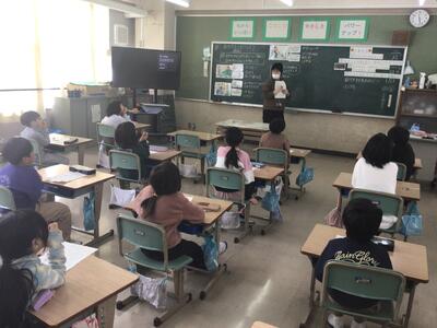 1年生は「え〜。」「すごい。」と反応したり、クイズを楽しみながらしてくれたりしました。