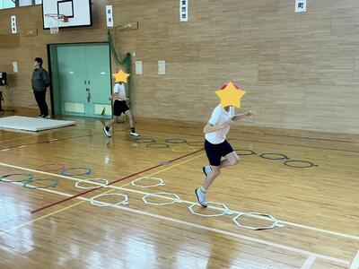 友達と「3周できた。」「速かったね。」と声を掛け合いながら、